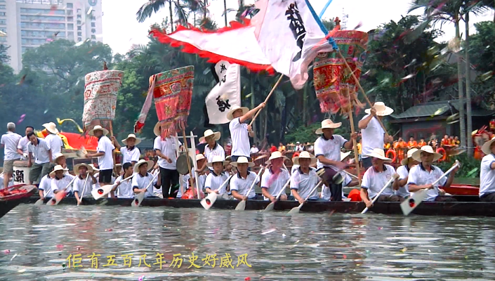 南海盐步有一条古老得让人难以置信的老龙舟,生于明朝宣德七年(1432年),至今已经588岁了,是全国现存最古老的龙舟。传说明朝万历二十五年(1597年)的端午节,一百艘龙舟齐集于珠江河上举行龙舟竞渡,南海盐步与荔湾泮塘的龙舟把其他龙舟抛在身后,不相伯仲。后来这两条鹤立鸡群的龙舟干脆结拜为亲,按照“年纪”大小,泮塘龙舟认盐步龙舟为“契爷”,也就是“干爹”,盐步龙舟则认泮塘龙舟为“契仔”,也就是“干儿子”。每年端午相互探亲,两地的老百姓也高高兴兴团聚在一起,吃一顿丰盛的龙舟饭。这样的特殊交往代代相传,延续至今。据说慈禧太后得知这样的龙舟结义很是感动,赐盐步龙舟为“盐步老龙”。
