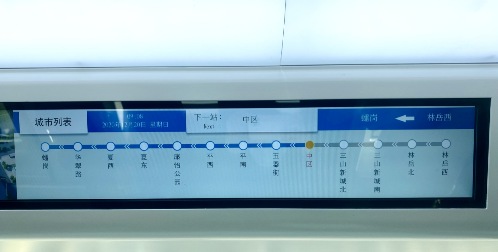 此次试乘从雷岗站到三山新城北站,运行距离约10公里,中途各站没有停车,跑完全程只用了20多分钟。