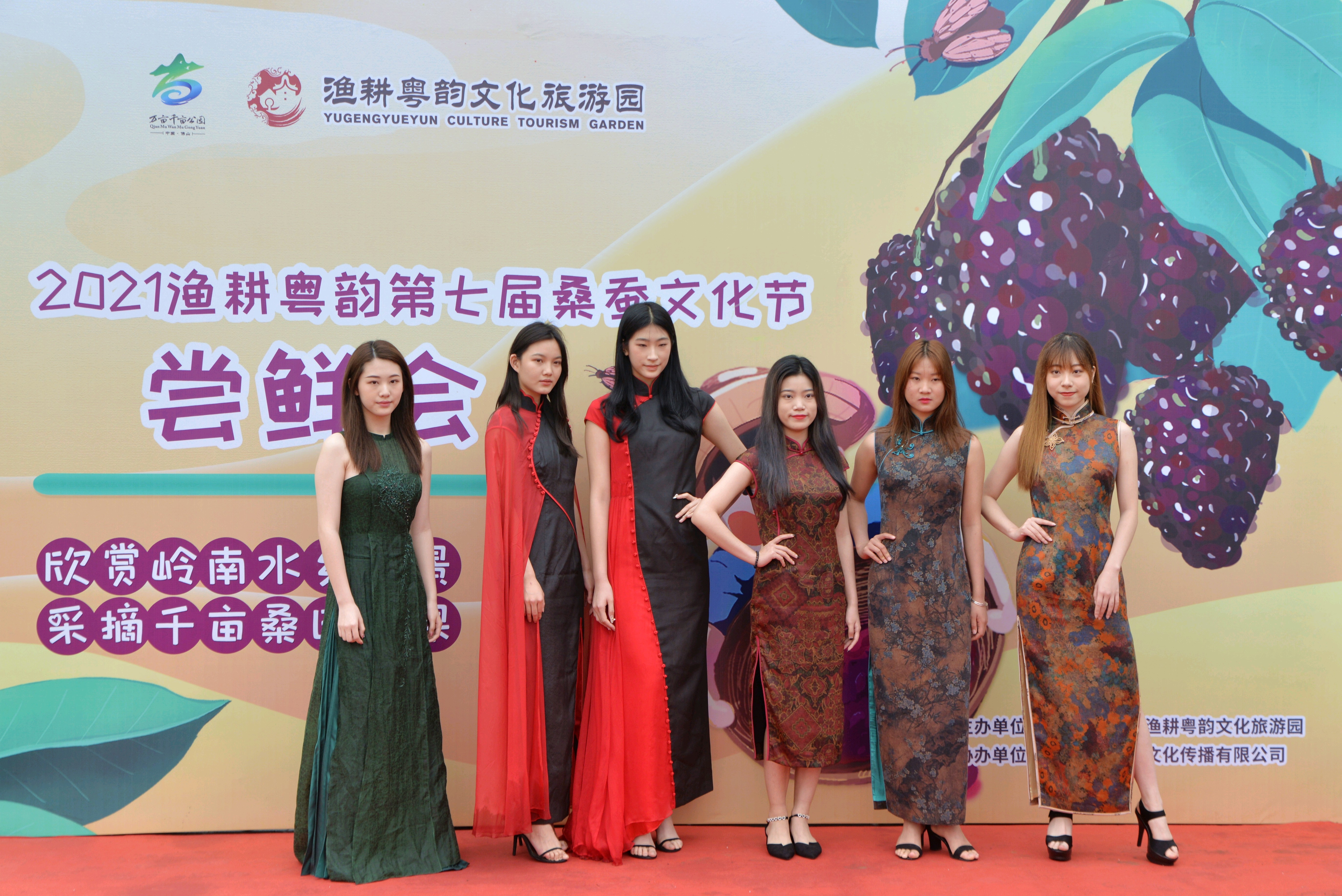 在当天的尝新活动上,落户渔耕粤韵文化旅游园的香云纱项目现场给游客们表演了香云纱时装秀,展现了香云纱悠久的历史,灿烂的文化,独特的工艺。