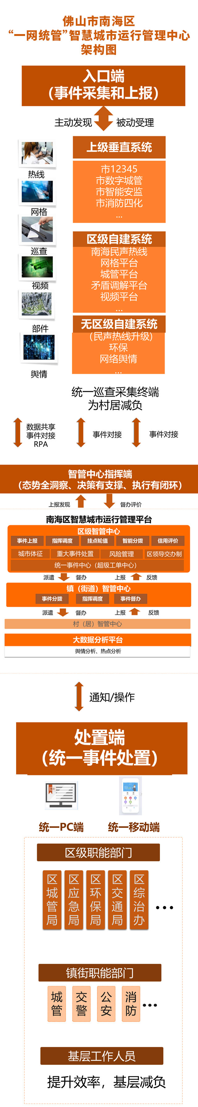 4月7日,南海区召开新一轮农村宅基地制度改革试点暨“一网统管”智慧城市运行管理工作动员会议。会议提出,南海以“大整合、大巡查、大处置、大智慧、大信用、大参与”为工作理念,依托“城市大脑”建设,推动构建横向全覆盖、纵向全联通的区域“一网统管”集约化治理工程,设立南海区智慧城市运行管理中心;统一12345服务热线,实现“一呼百应。”