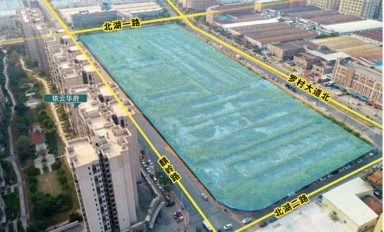 地块位于罗村孝德湖板块,四周有北湖一路、北湖二路、罗村大道等主干道环绕,交通四通八达,且距离在建的佛山地铁3号线“罗村站”仅400米,距离佛山西站和佛山沙堤机场仅2公里,5分钟内坐拥机场、高铁、地铁构成的立体交通体系。