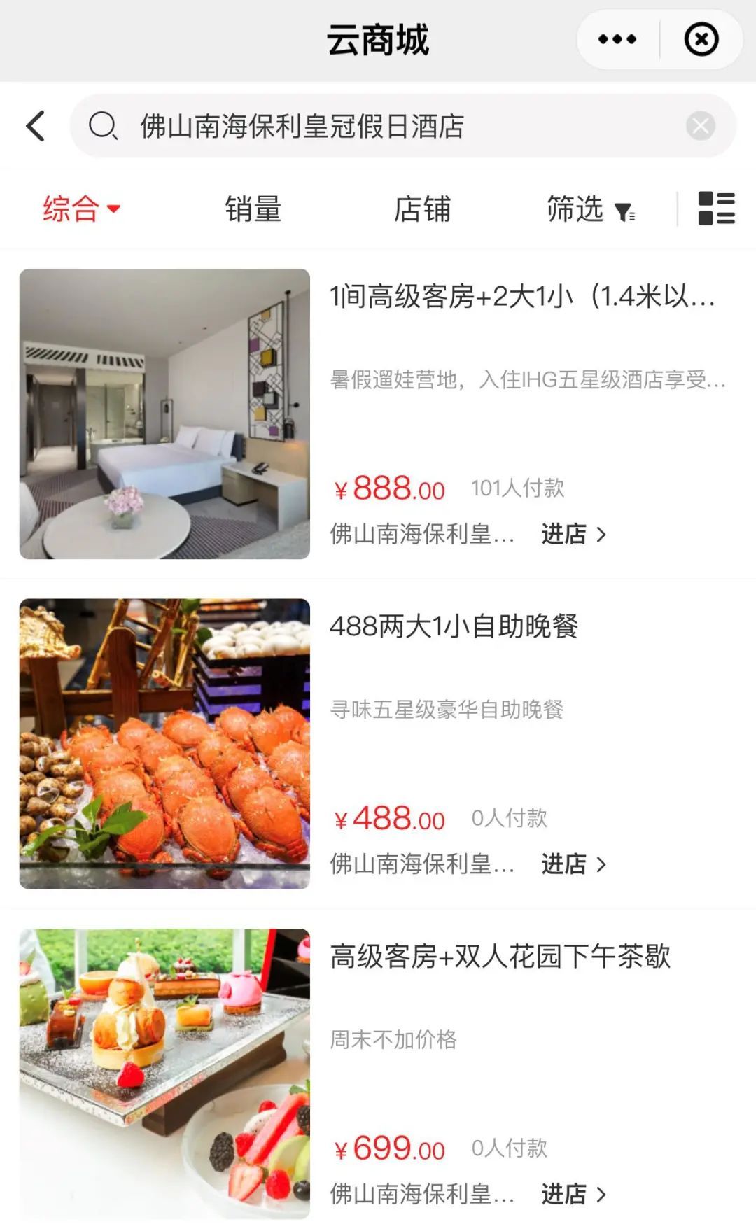 佛山南海保利皇冠假日酒店,屹立于风光秀丽的文翰湖畔。目前在“线上商城”推出三款优惠套餐。