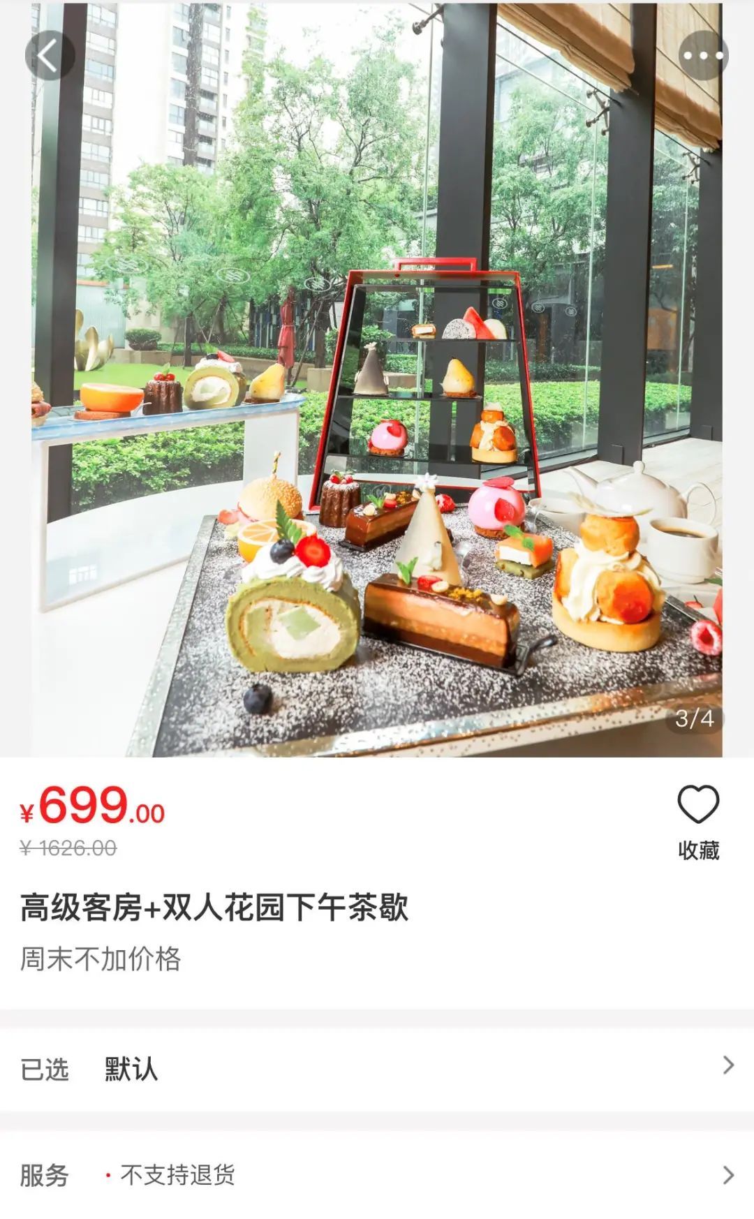 原价1626的“高级客房+双人花园下午茶歇”线上仅需699,叠加“满500-300”消费券后仅需399,约等于3折优惠!还有高性价比自助晚餐等你来享!