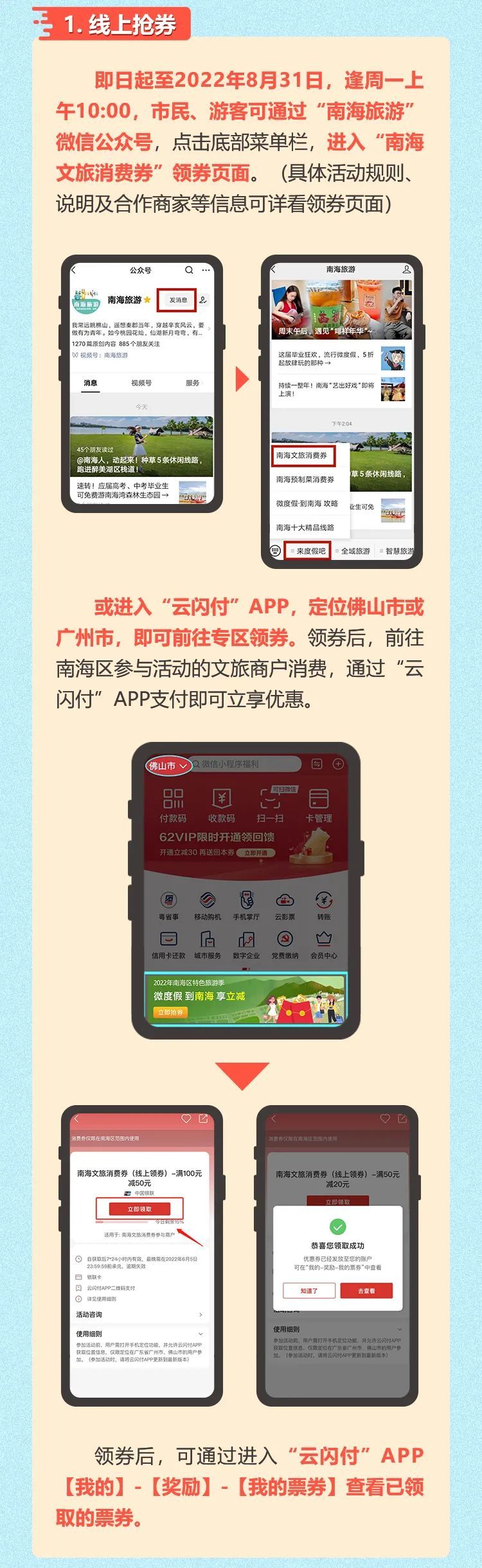 首页“南海微度假”轮播图进入消费券领券页面,点击