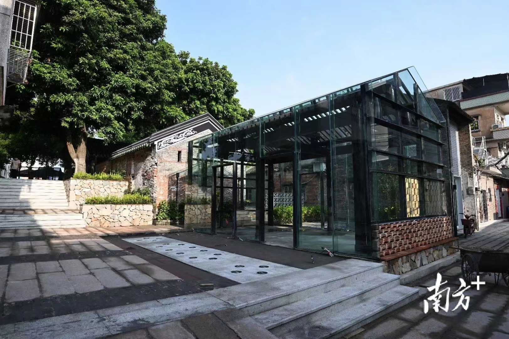 为最大程度复原叠滘圩的百年风貌,该项目在施工选材方面也下足了功夫,如老街重铺了石板路,并对石板进行打磨复旧处理,游客中心也采用了汉白玉石堆砌等。