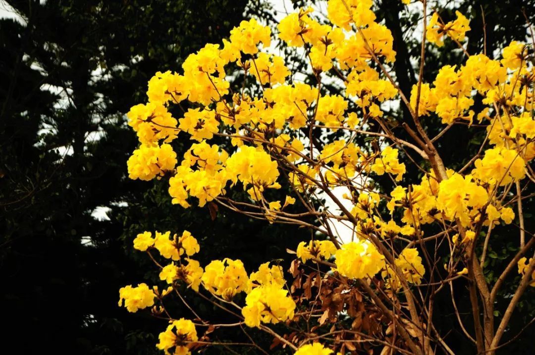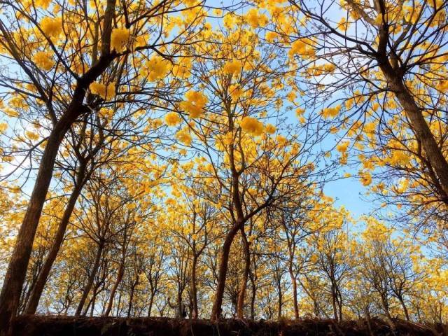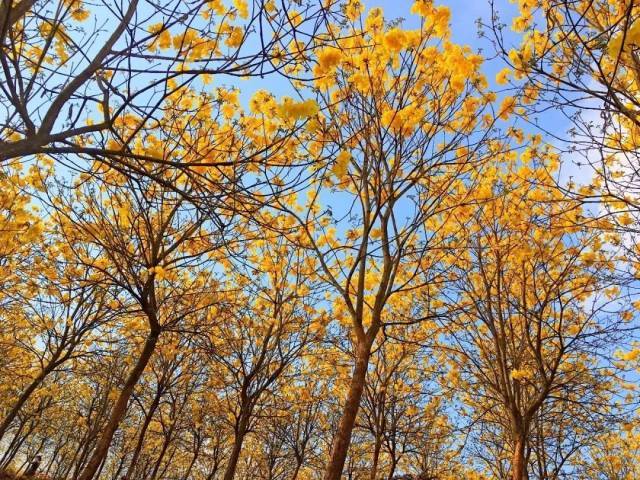 风铃木花期甚短,只有10~15天,天气也逐渐回暖,赶紧约上三两知己好友,一同欣赏绚烂金黄风铃吧!揭西境内能够欣赏到大片风铃木的地方还有坪上的东南村。