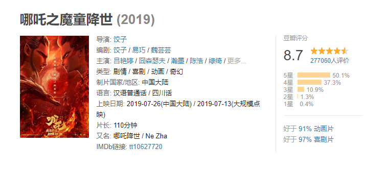 最近,有一部国产动画电影横空出世,一经点映就口碑炸裂,网友纷纷化身“自来水”对它疯狂打call,它就是《哪吒之魔童降世》,阿不,或许我们应该叫它《哪吒之爆款降世》。