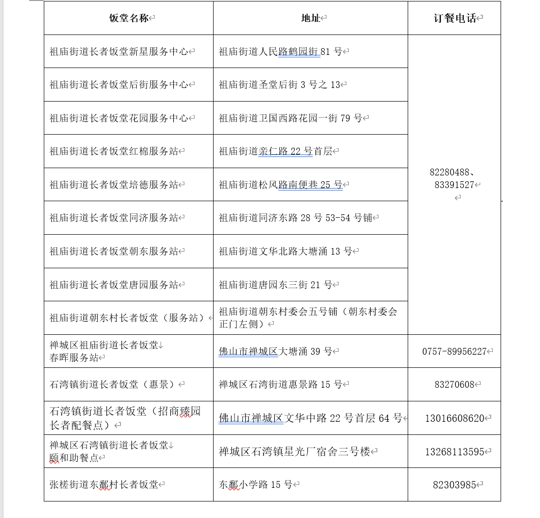 附:禅城区长者饭堂一览表
