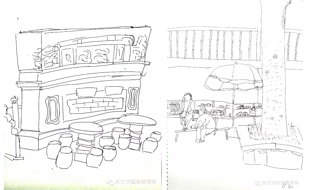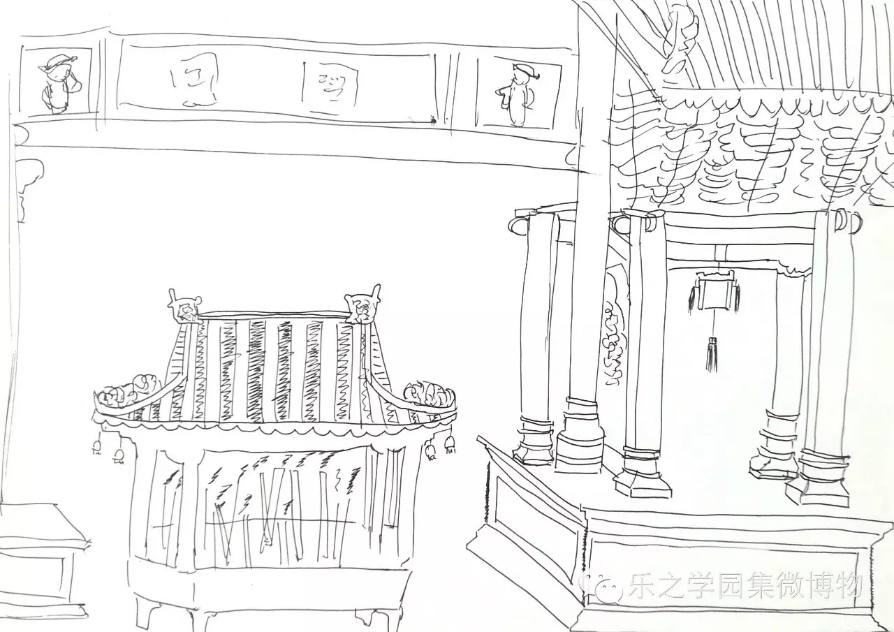 啰嗦了这么多,不能参与北帝巡游的日子里,我们来看看佛山孩子们手绘的素描作品,这是佛山徒手陶艺老师黄志伟带着孩子们在祖庙现场写生的作品,这些干净的线条有没有唤起你对祖庙、对北帝的个人记忆?而这些作者现在都已经是高中生、有的已经步入大学。