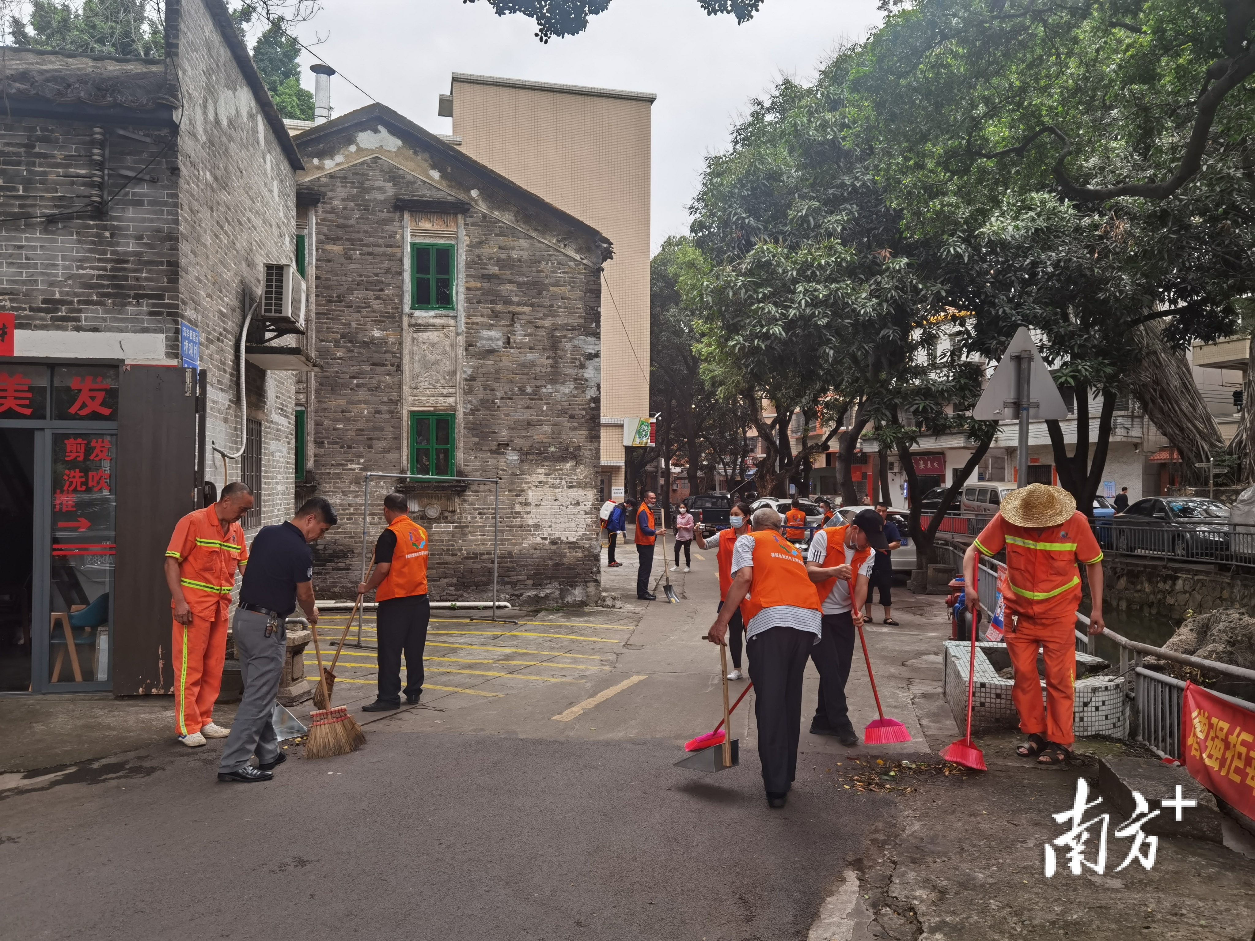 在魁奇路旁的佛山市禅城区石湾镇街道湾华村,碧水环绕、古树参天的古村里,身着红马甲的工作人员和志愿者们,深入内街巷和房前屋后开展卫生大清洁,这是“绿色家园齐守护”爱卫活动暨村庄清洁大行动湾华村主会场的一幕。正值4月全国第33个爱国卫生日,4月29日下午,禅城区爱卫办、禅城区农业农村局联合组织开展了这项活动。除了湾华村主会场外,禅城区一镇三街各村居同步开展了卫生大清洁,掀起五一节前爱国卫生活动和农村人居环境整治热潮。