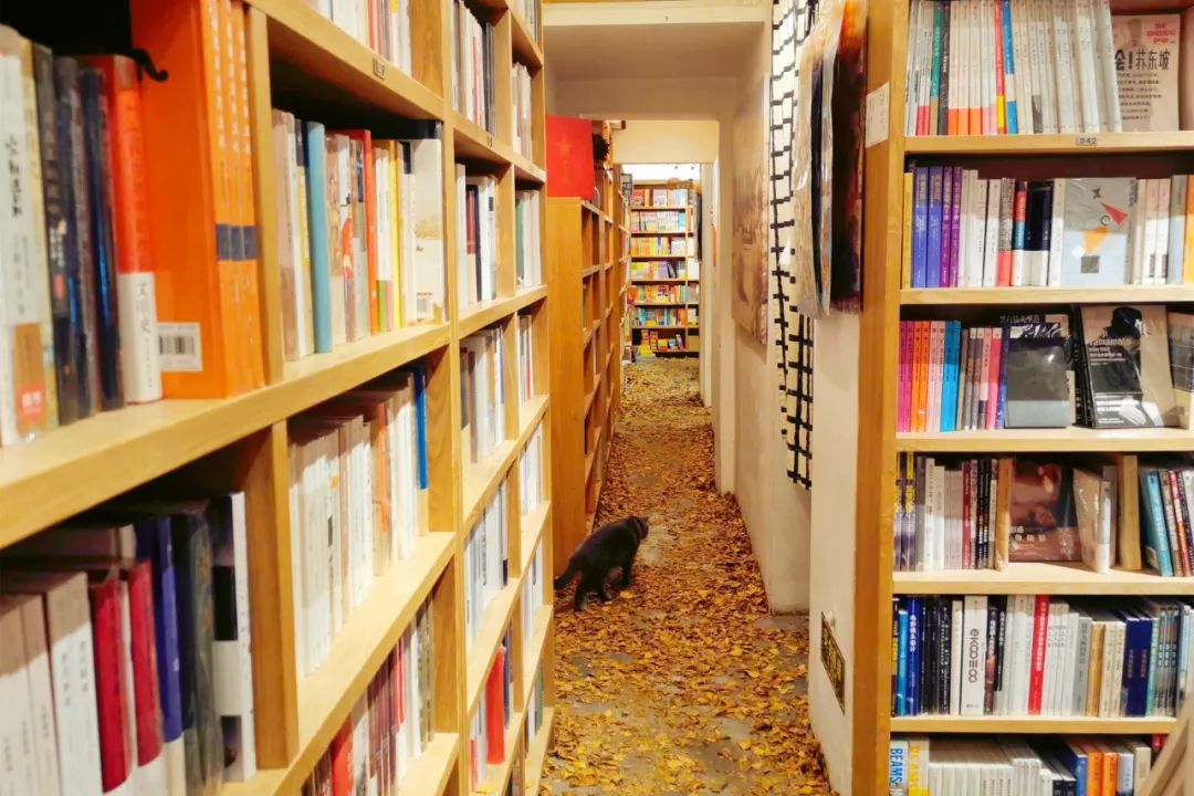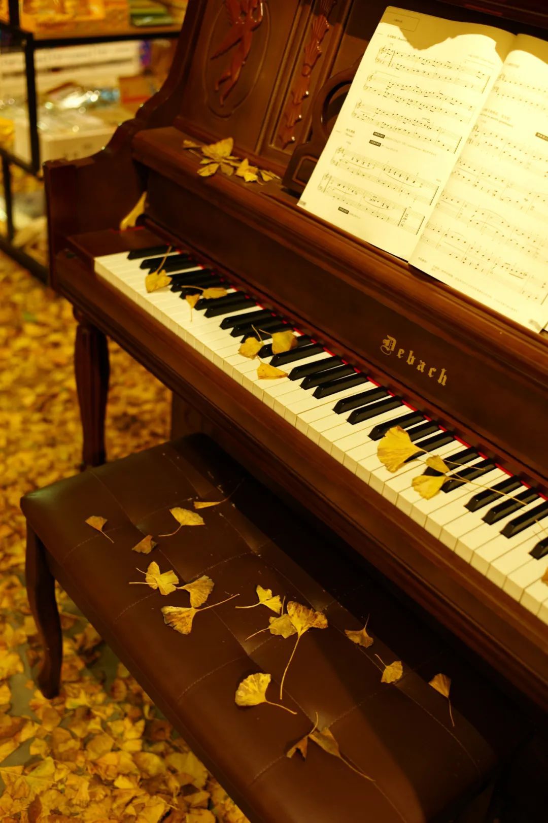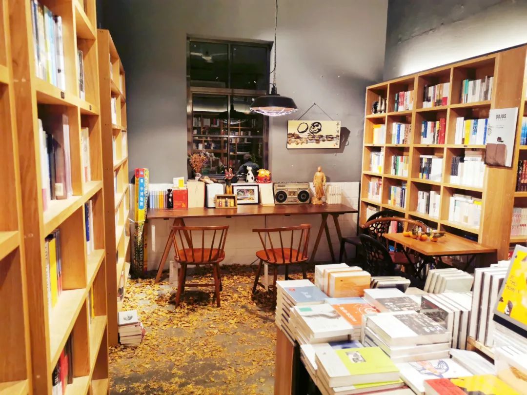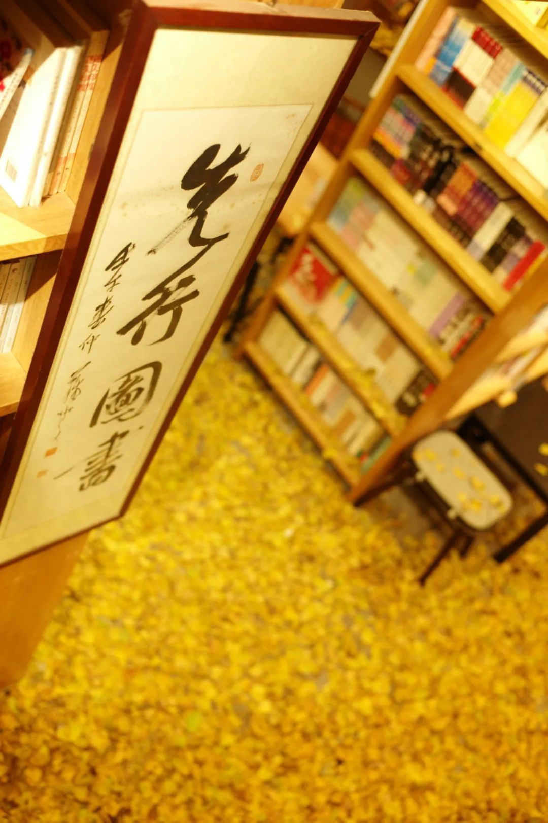 金黄金黄的银杏叶铺满了整座书店地面,