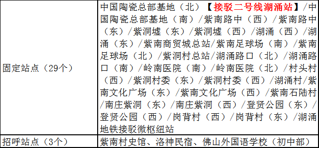 站点设置:中国陶瓷总部基地【接驳二号线湖涌站】、阿农湾农耕文化园