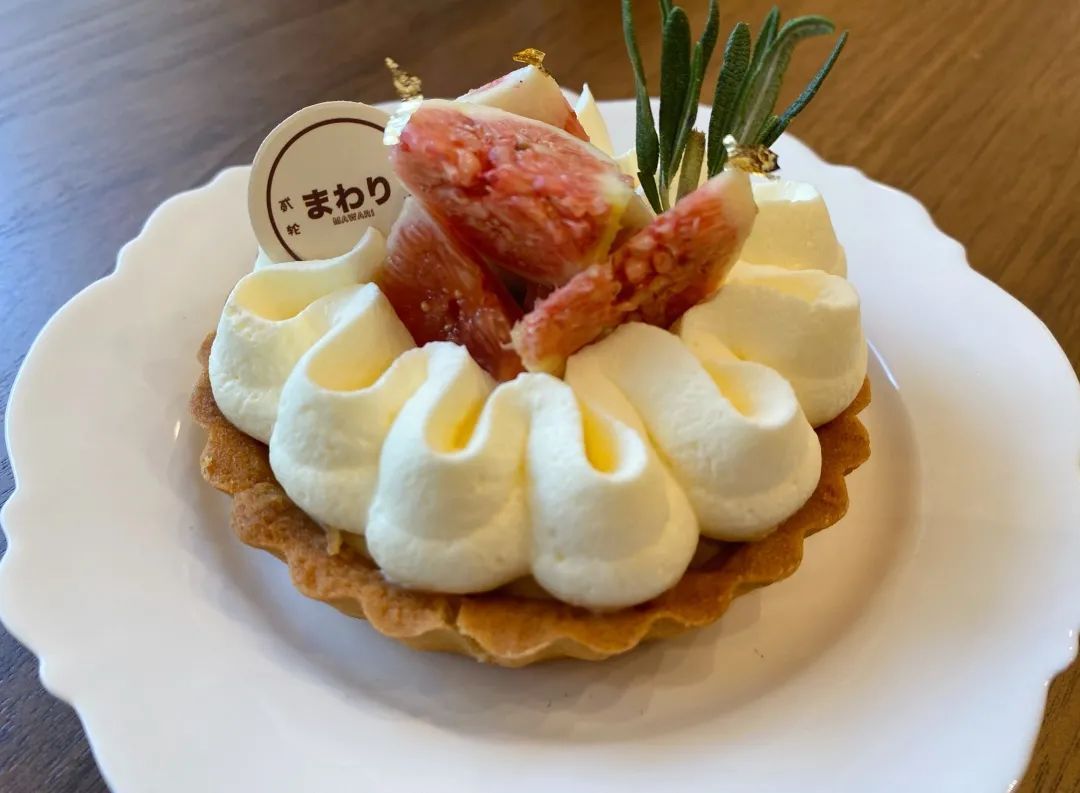 无花果伯爵慕斯杏仁塔,塔面上的奶油是咸奶油,吃上不会腻,挞皮带着浓浓的杏仁味,甜度刚好,酥脆可口。