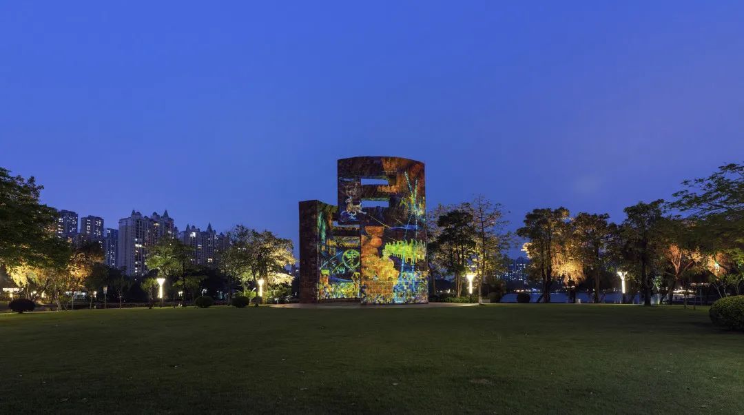 周边楼宇墙体同步呈现亮丽纷呈的夜景