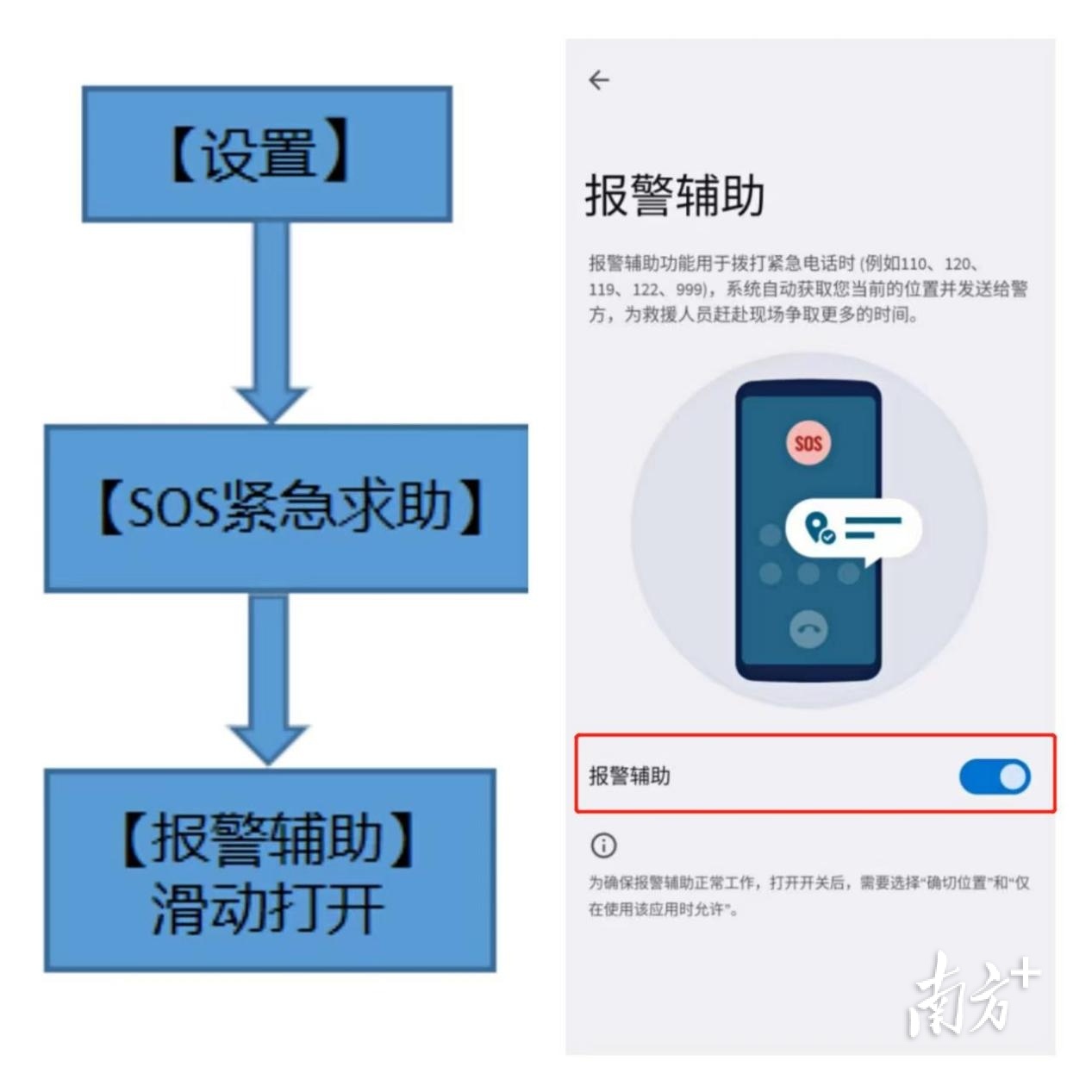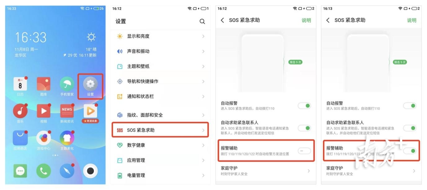 如何实现一键报警?记者了解到,不同手机品牌的操作方式不同。相关手机用户可通过以下方式,根据实际操作收获这一“救命神器”。