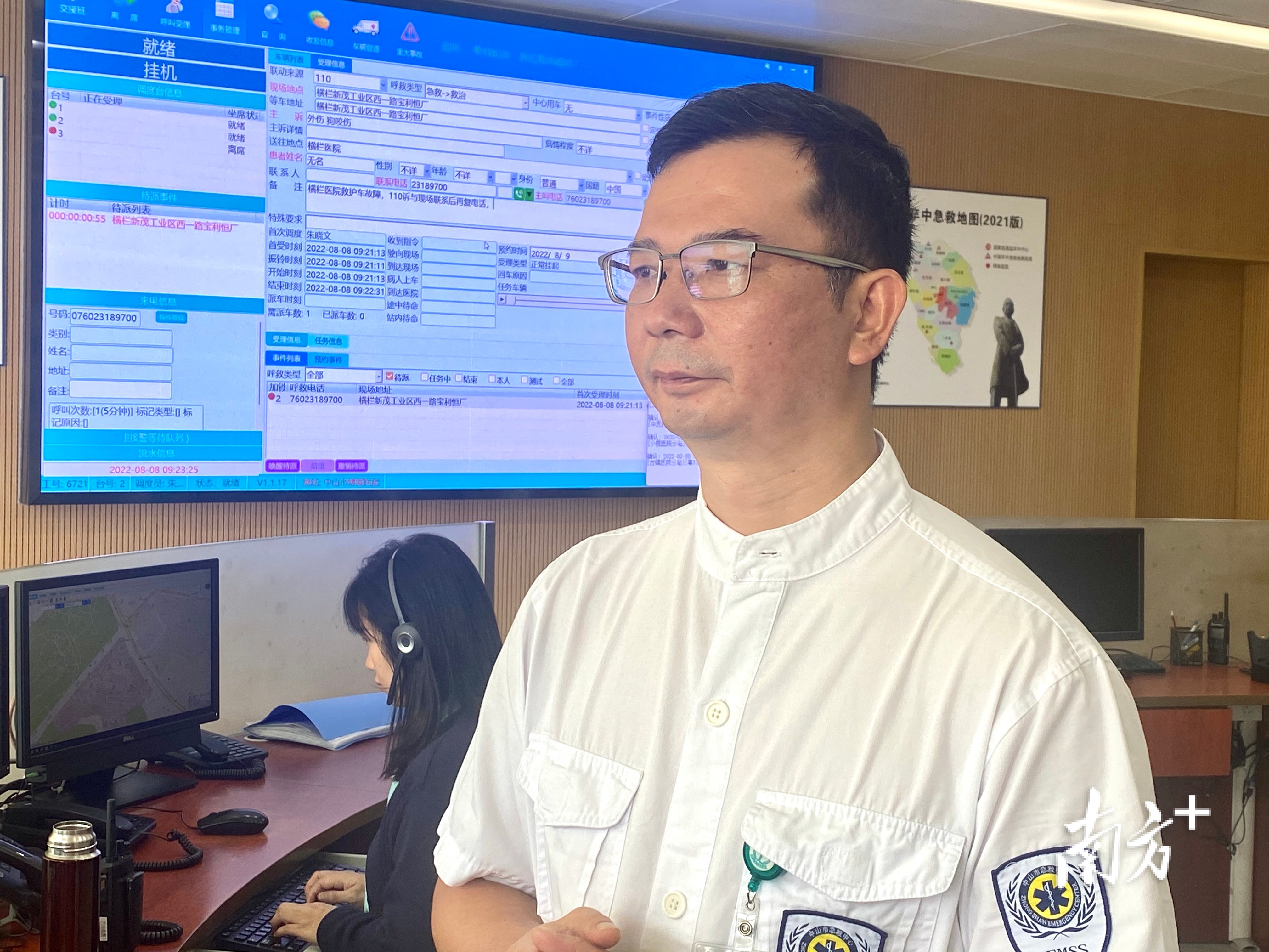 中山市120指挥中心主任。 南方+ 曾艳春 拍摄