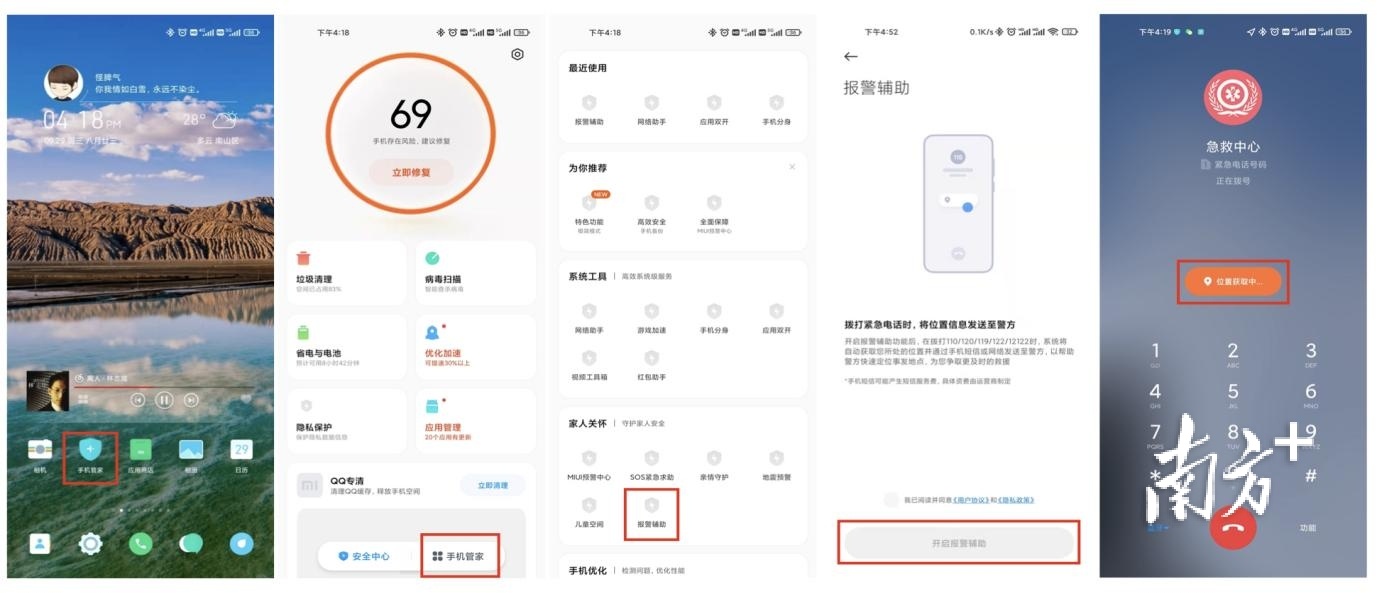 同时,记者也了解到,目前,广东省大部分120指挥中心已实现手机自动定位,求助人只需根据自己的手机型号,启动“辅助报警”功能,即可方便120指挥中心定位。
