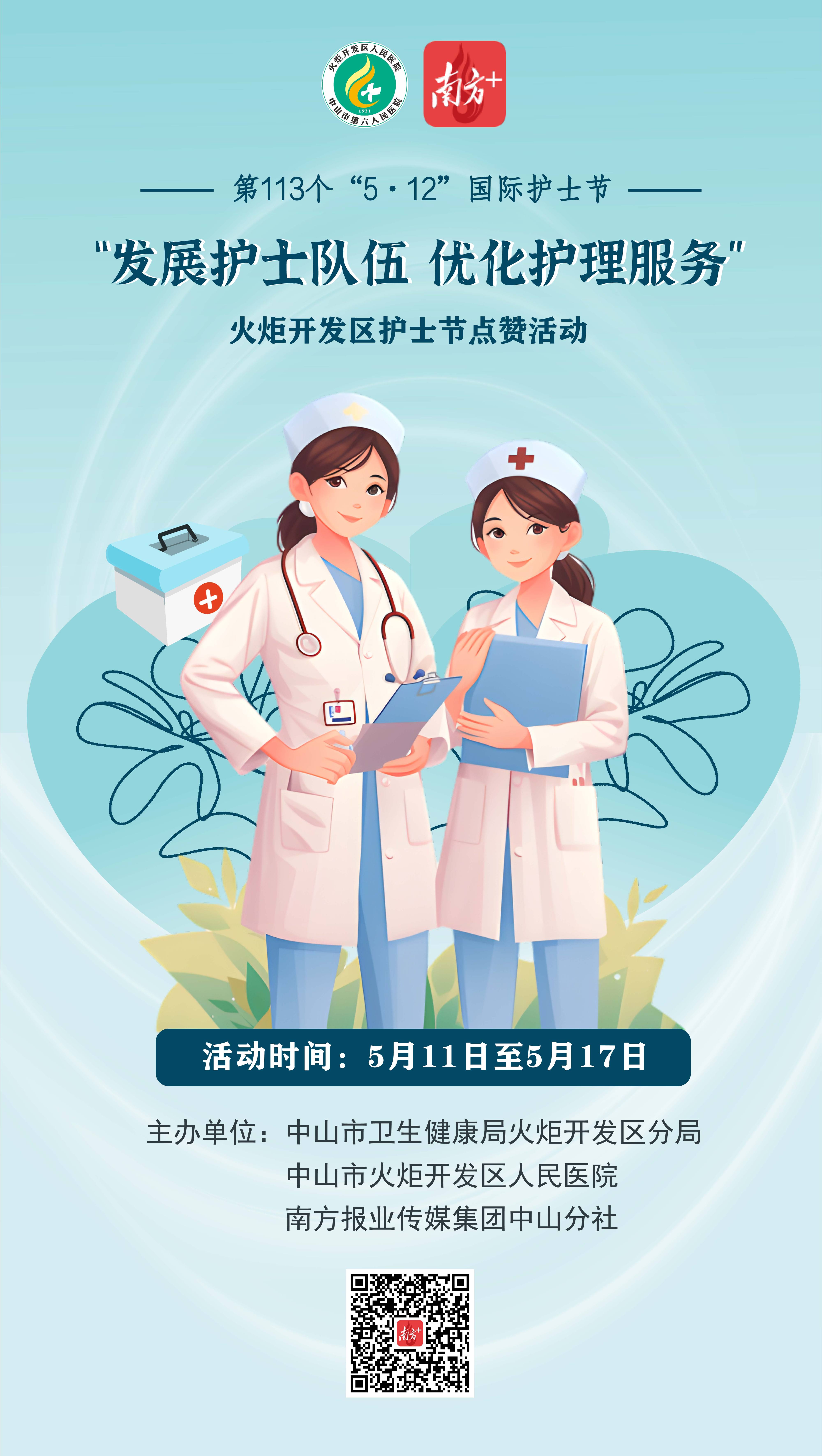 在护士节来临之际,为进一步增强护士职业荣誉感,在全社会营造尊重、关心、理解、支持护士的浓厚氛围,中山市卫生健康局火炬开发区分局、火炬开发区人民医院联合南方报业传媒集团中山分社开展“发展护士队伍,优化护理服务”主题点赞活动。