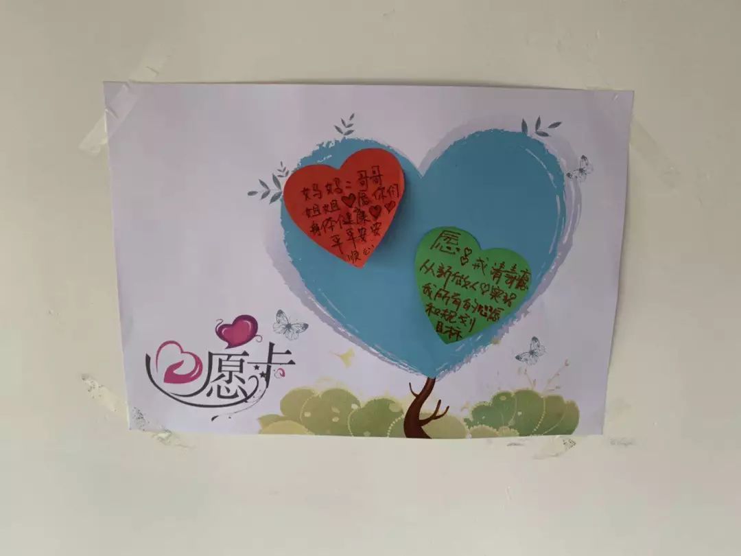 在每位戒毒人员床铺旁,都贴有心愿卡,上面是她们写下的愿望,记者发现,多数人的愿望都是“身体健康”、“早点回家”。