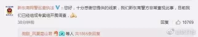 @黔东南网警巡查执法 也在微博下回复:您好,十分感谢您提供的线索,我们黔东南警方非常重视此事,目前我们已经组成专案组开展调查。