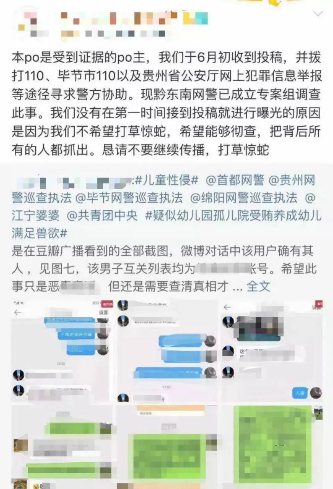 凯里市公安局工作人员称,今天已经接到报警,也关注到了微博上的爆料,正在核查真假,还没去辖区内幼儿园和福利院排查,之前没有接到过相关警情。