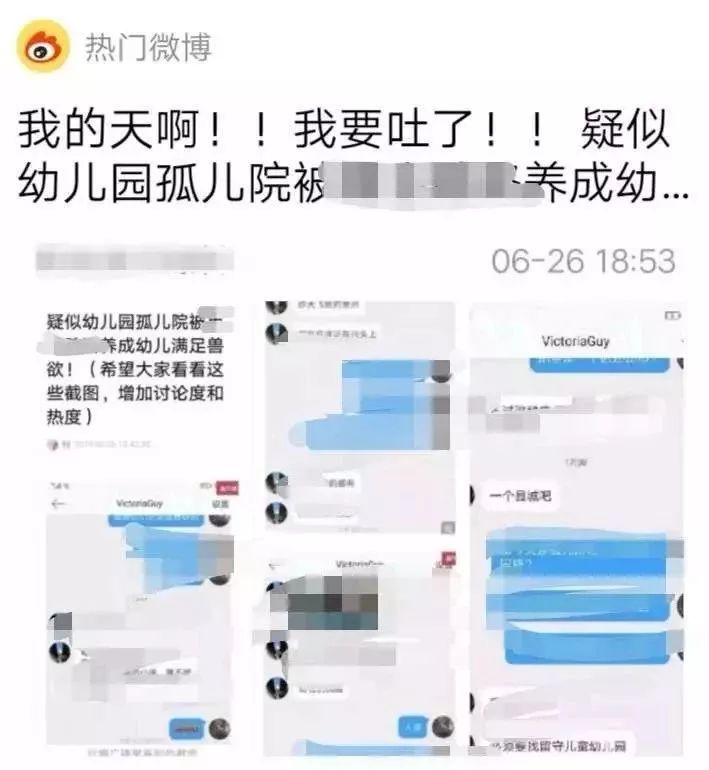 该爆料微博的内容为,微博网友@Starrynighto儿童保护 发文,称其6月1日接到投稿,该投稿由数张微博私信对话截图和微信聊天对话截图组成。其中,微博私信对话的双方系一名网友(疑似投稿人)与网友@VictoriaGuy 。网友@VictoriaGuy 发了多张打了马赛克的照片,其中就包括两张女童趴在床上的照片。