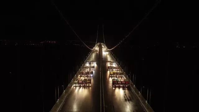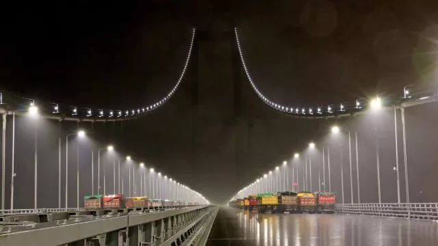 从照片中可以看到,一辆辆满载的大货车已经“上桥”试验了!