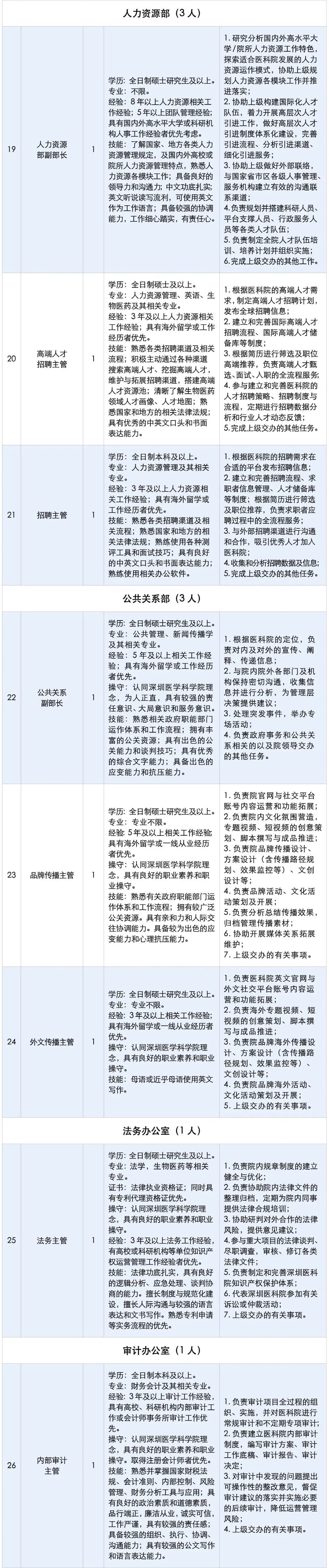 邮件主题:[姓名]+应聘深圳医学科学院(筹)+岗位名称