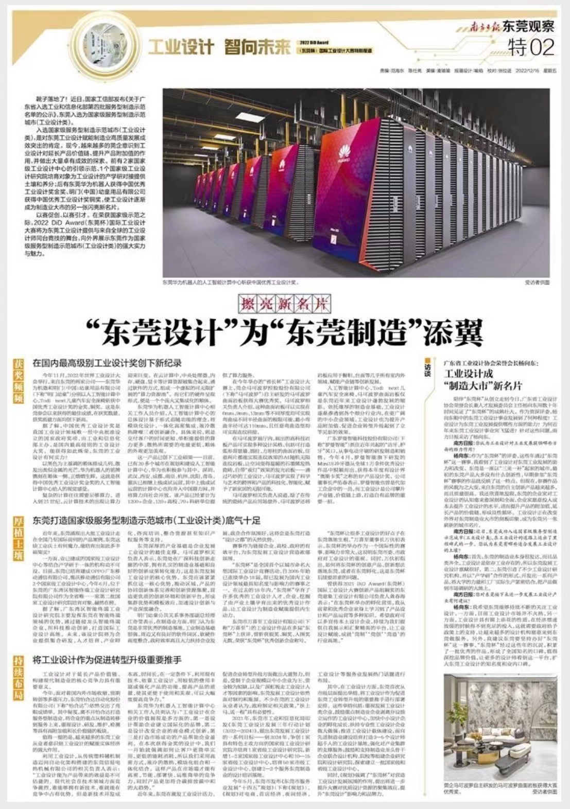 南方日报:你认为工业设计对工业发展提供哪些方面的助力作用?