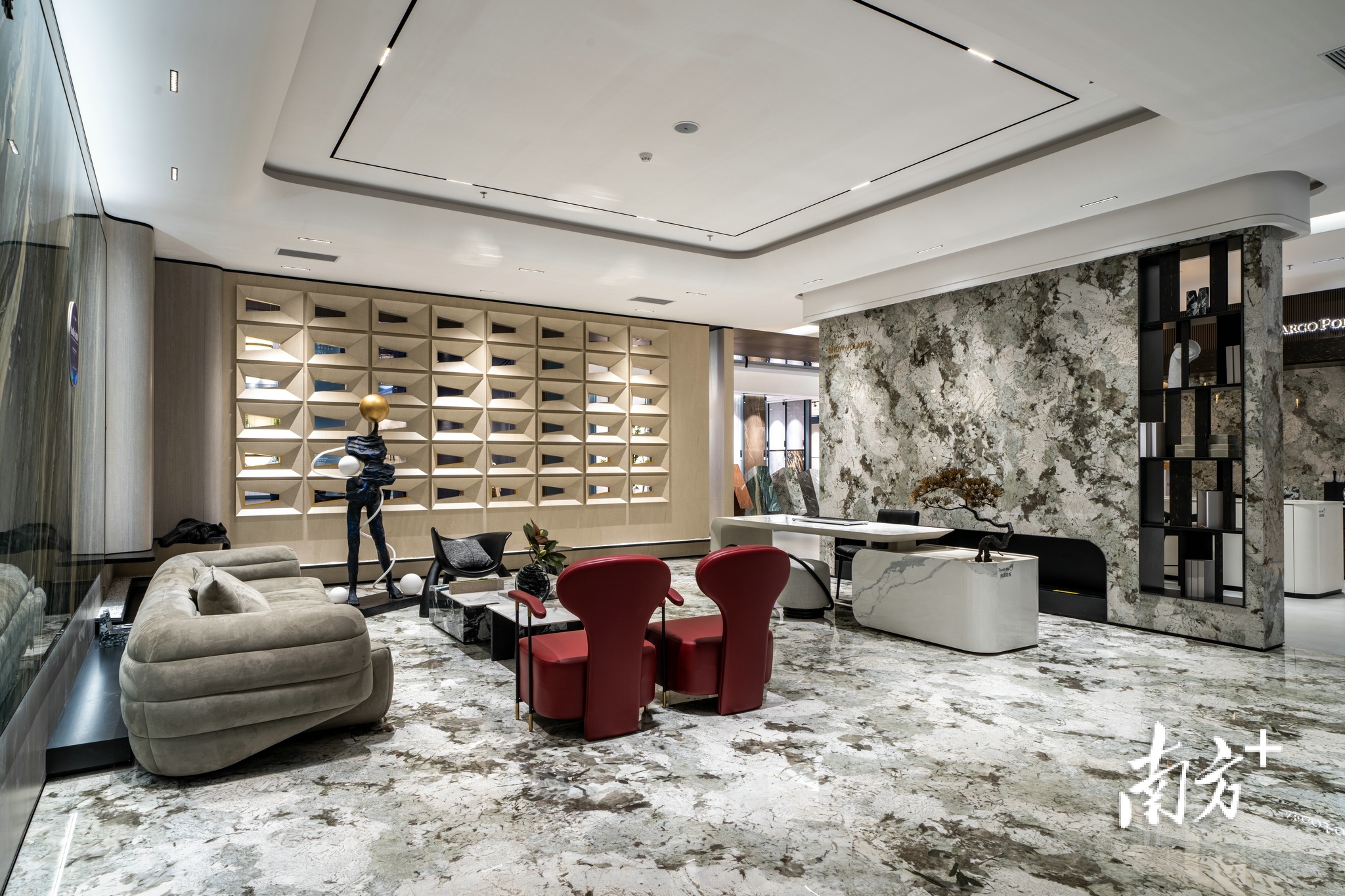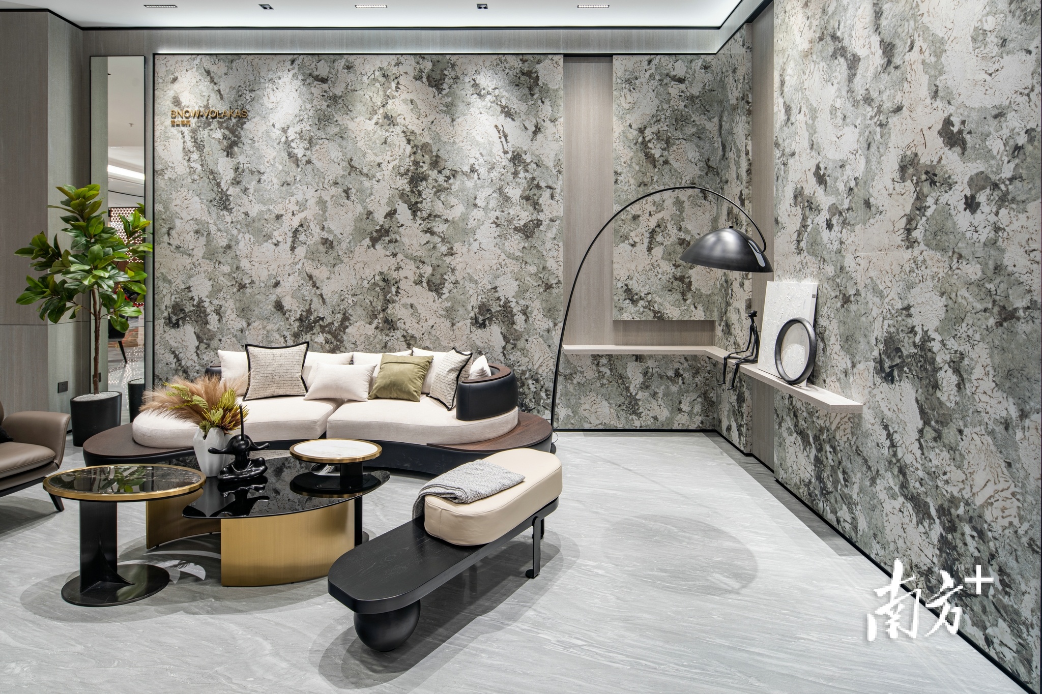 在马可波罗展厅内,展出的高科技岩板产品可实现多种设计风格,包括可打造弧形背景墙、圆柱、方形柱的曲面岩板,任意两片都能实现连纹效果的AI随机无限连纹岩板,让空间变得温暖的石墨烯发热瓷砖,自带“夜灯”效果的发光岩板……通过巧妙的工业设计,马可波罗实现了科学与艺术的跨界和产品的科技化、智能化,赋予了新家居的无限可能。