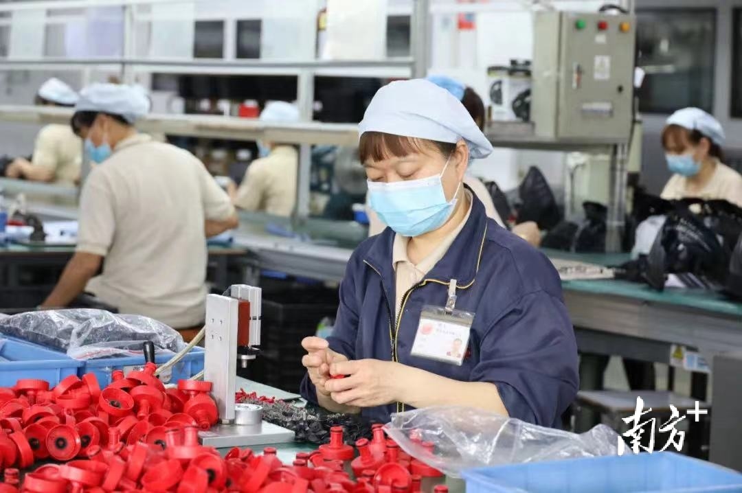 经过扫码打卡、测温、查验健康码等防疫措施后,走进东莞伟士塑胶制品有限公司(下称“伟士塑胶”),生产线上忙而有序。