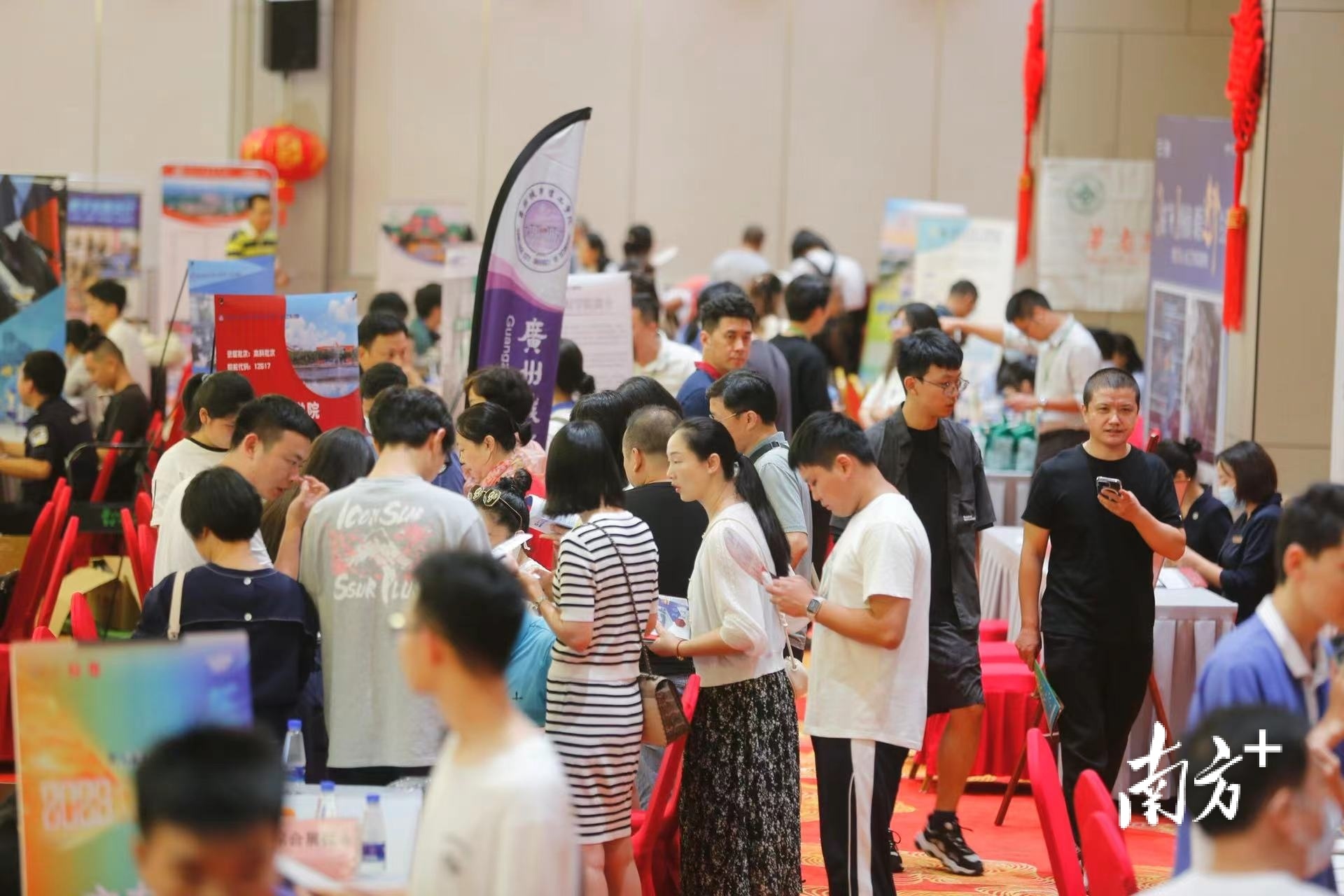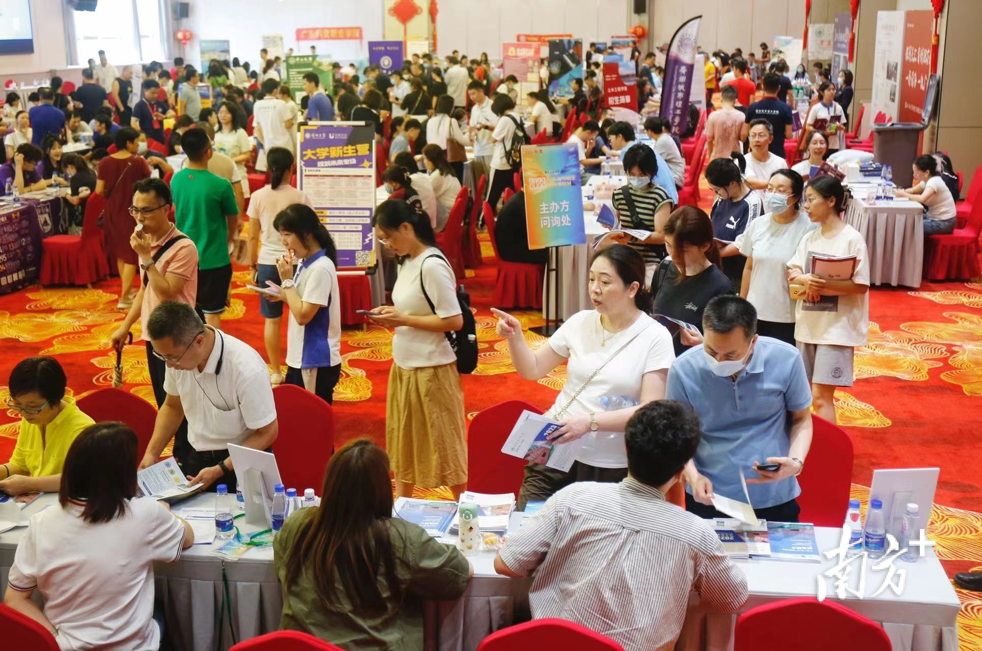 当天上午,恰逢广东高考放榜,不少考生现场咨询心仪高校,针对性强,受益颇多。