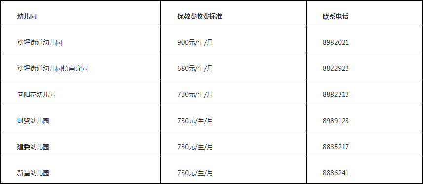 6.幼儿园保教费收费标准及咨询电话
