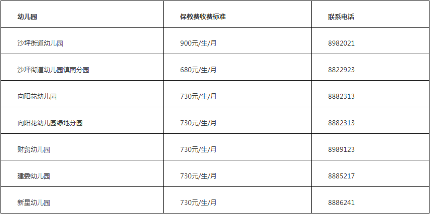 3.幼儿园保教费收费标准及咨询电话
