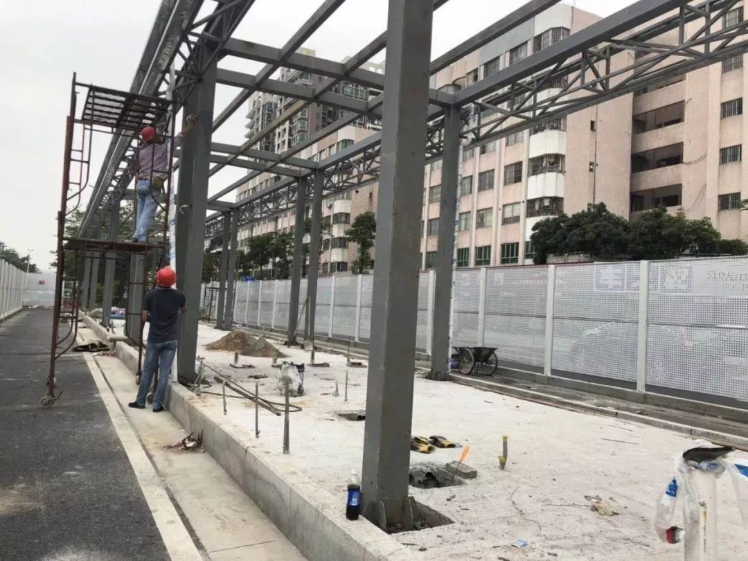 该路段从3月10日正式开工,现三个站均已完成地面浇筑及钢结构主钢梁安装工作,5月计划完成顶棚铝板安装、售票房轻型钢结构安装、水电安装、智能化设备安装等工作。计划在7月底完成康华路三个站台施工,8月份进入设备调试阶段。