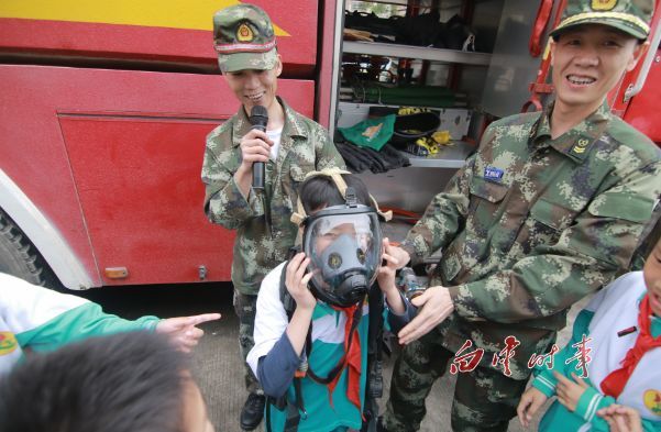 学生们则签名争做森林防火的好公民、宣传的小卫士,参观乘坐消防车,体验穿消防服、戴防毒面罩,零距离接触消防器材等体验活动。