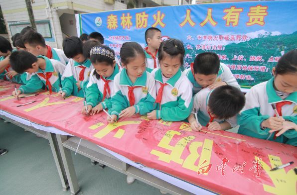 该校还印发了《森林防火倡议书》,通过“小手拉大手”,让学生将所学的森林防火知识向其家长宣传,,真正做到森林防火知识进家庭。