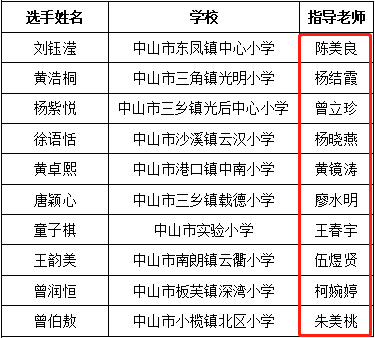 季军:曾伯敖(中山市小榄镇北区小学)