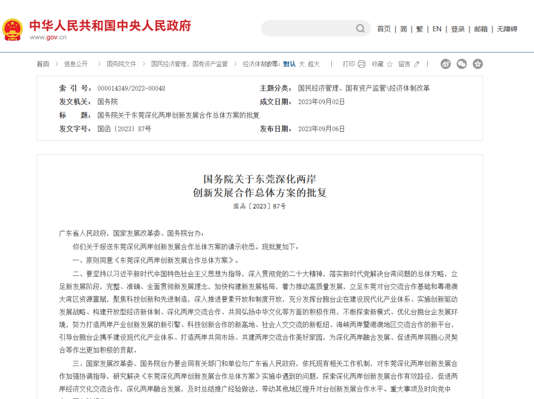 要理解这支基金的深远意义,需将目光回溯至2023年9月。彼时,国务院批复同意《东莞深化两岸创新发展合作总体方案》,为两岸产业融合擘画了新蓝图。