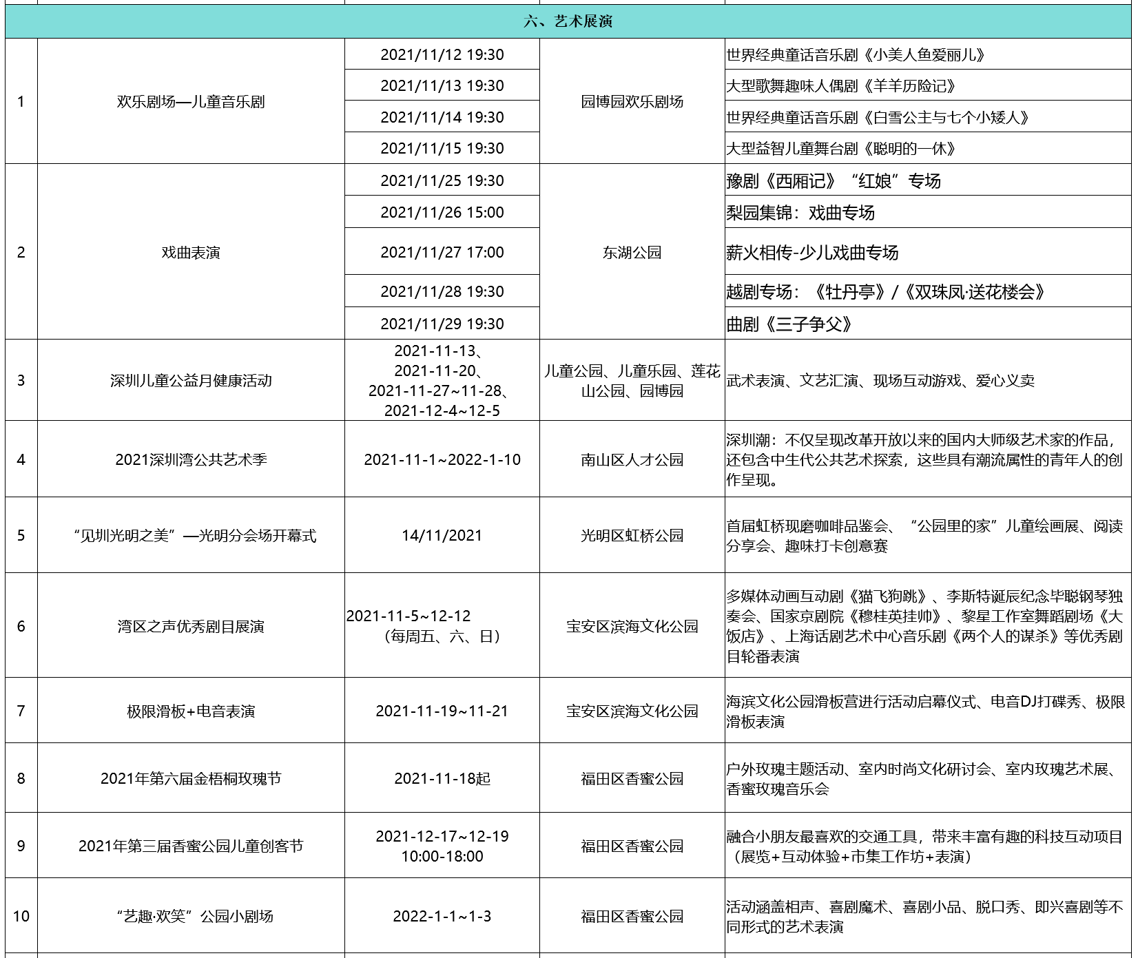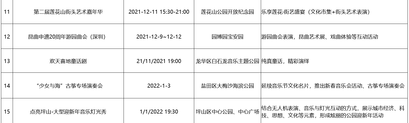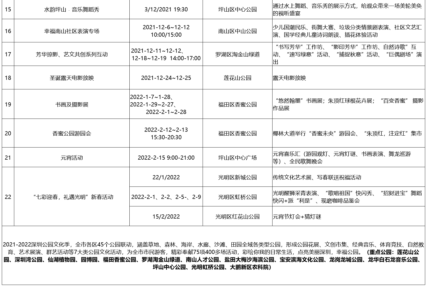 附:2021-2022深圳公园文化季活动排期表