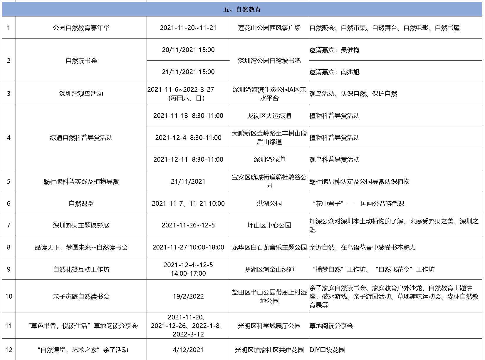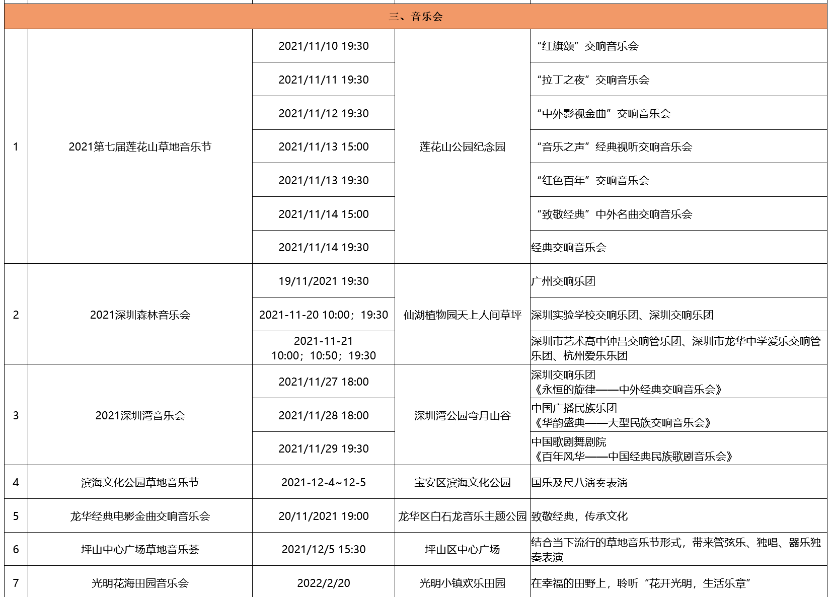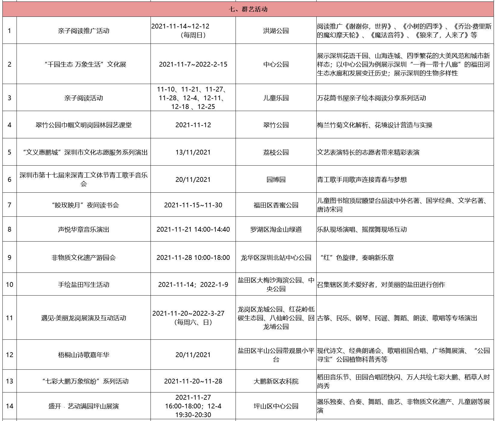 附:2021-2022深圳公园文化季活动排期表