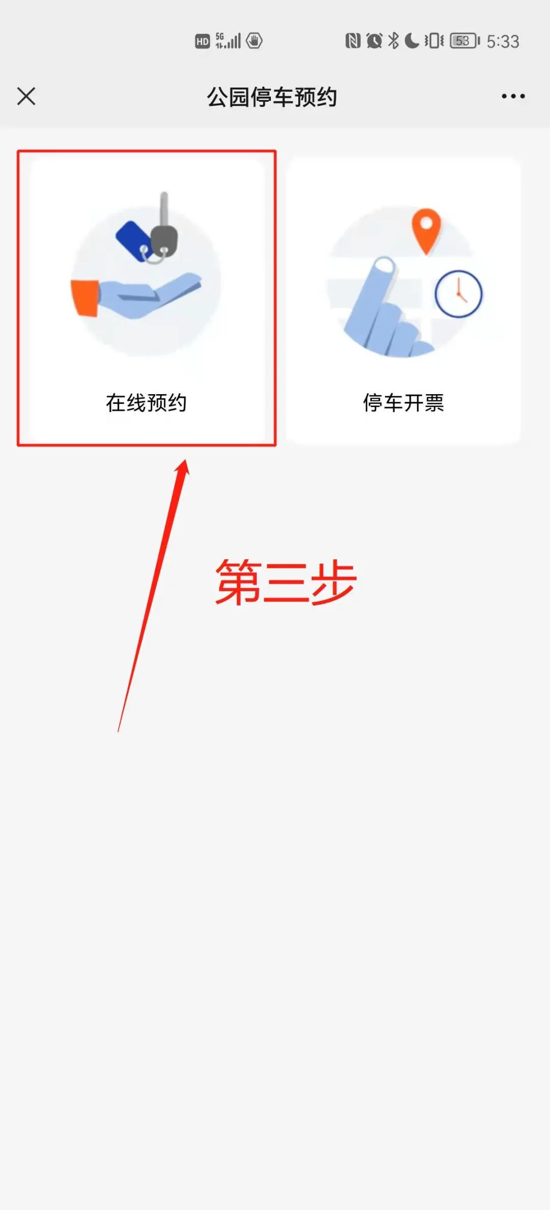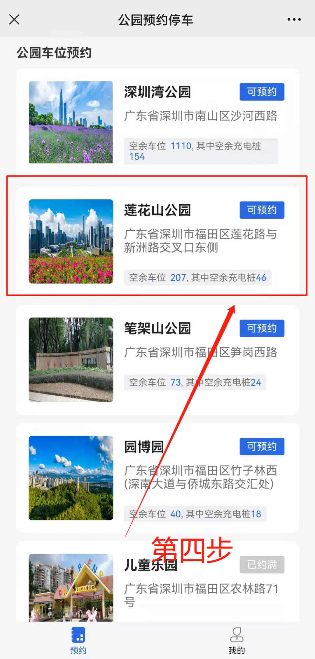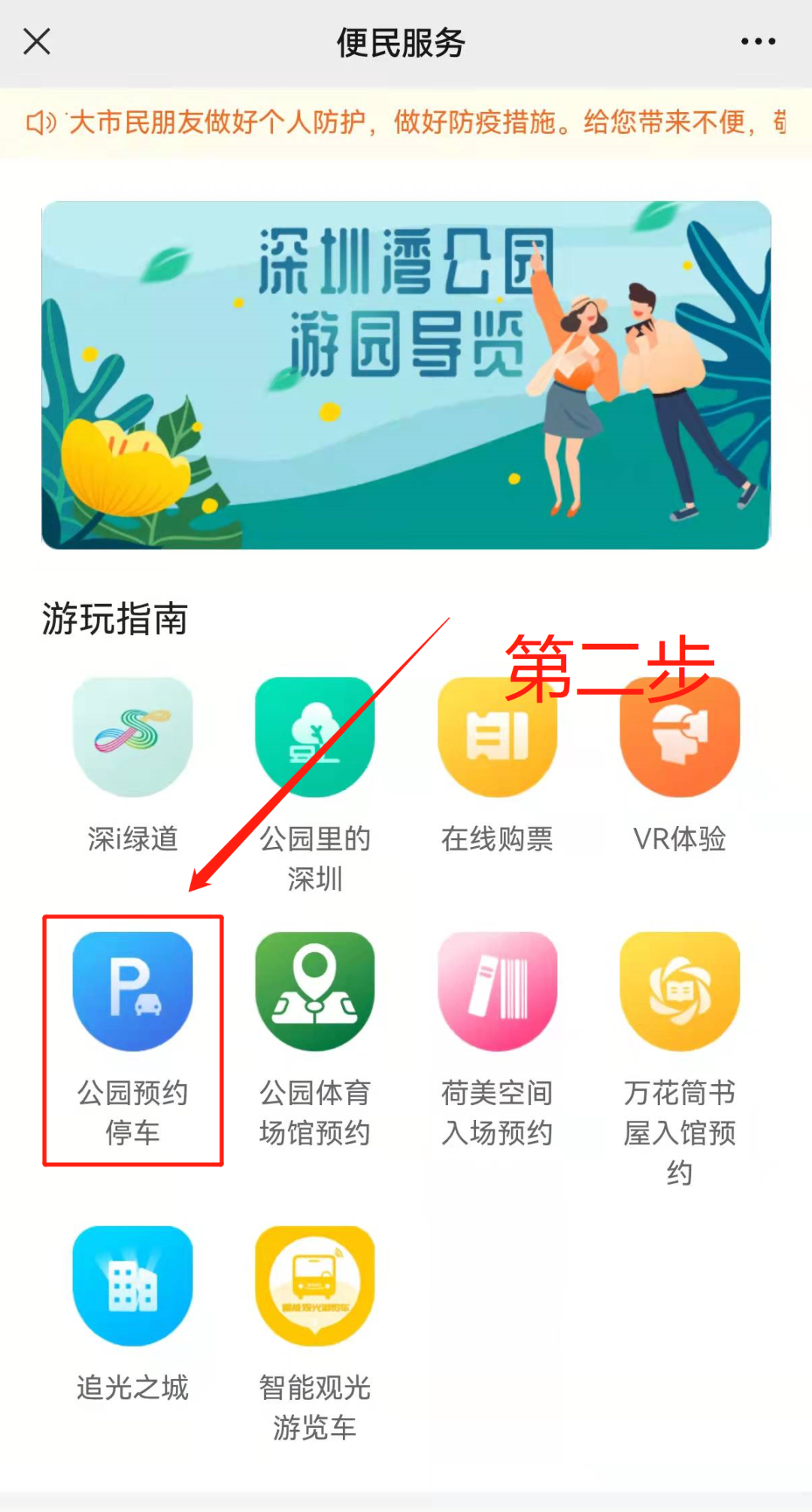通过“便民服务”栏目中的“公园预约停车”进行预约