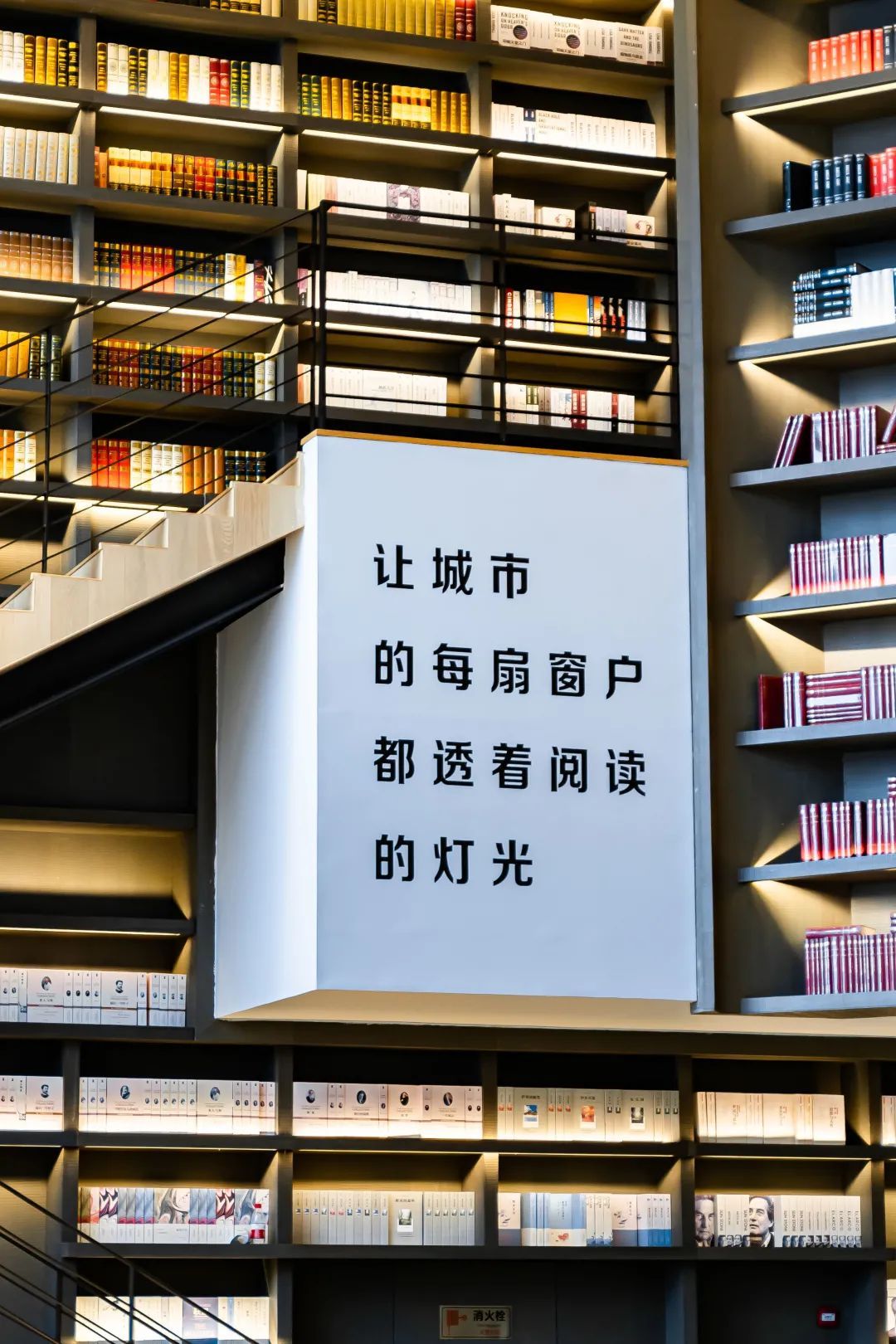书城一共有7层楼,藏书量约70万册。每层的设计风格各不相同,搭配的灯饰也均为不同气质。