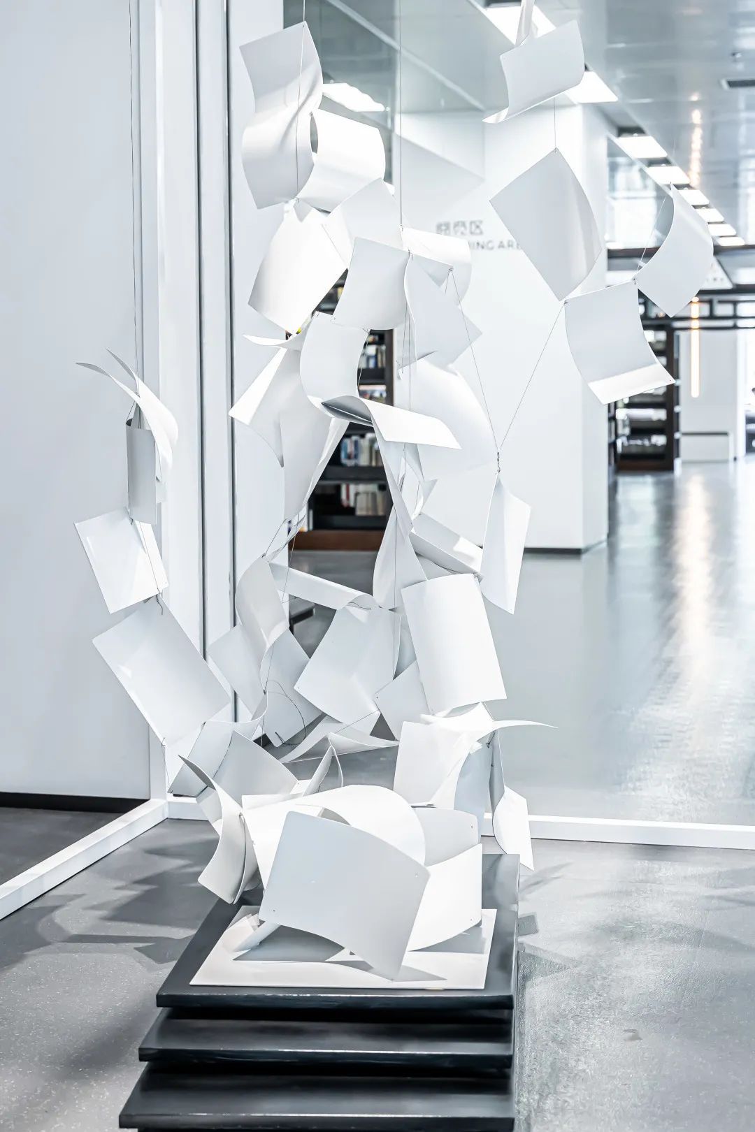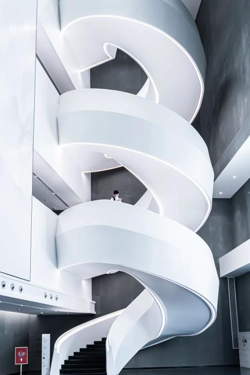 位于光明图书馆中庭的纯白色旋梯,简约留白设计,赋予无限想象空间。