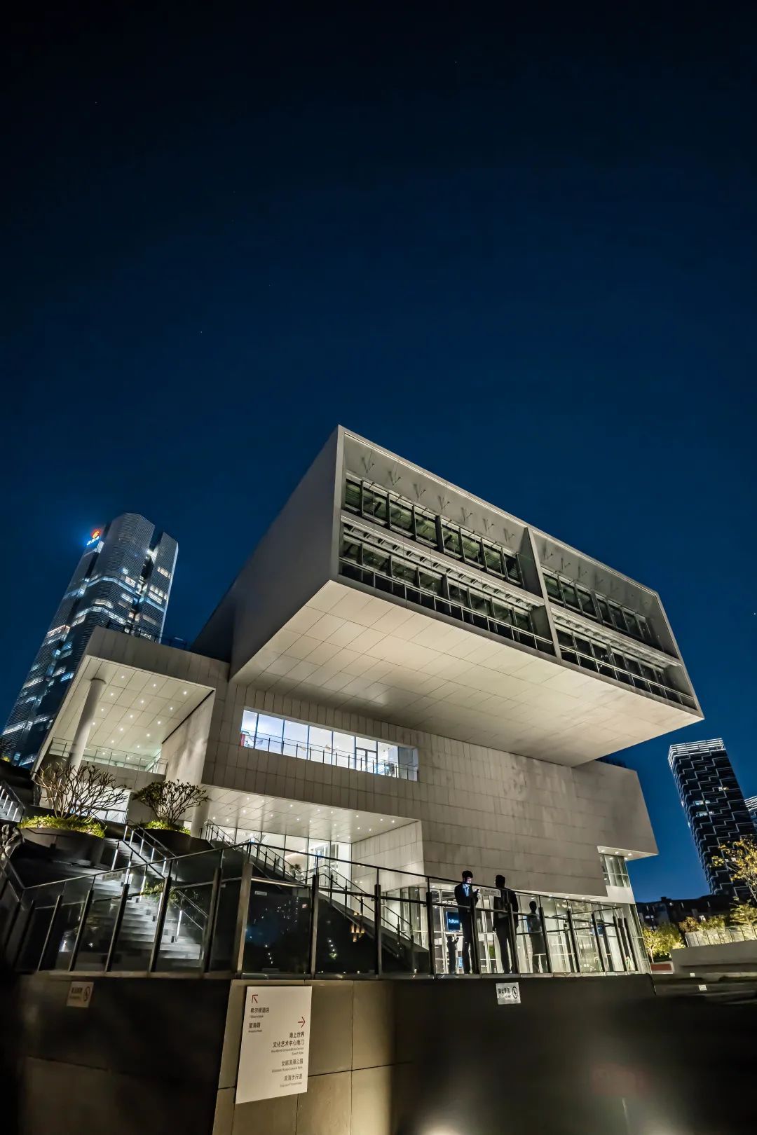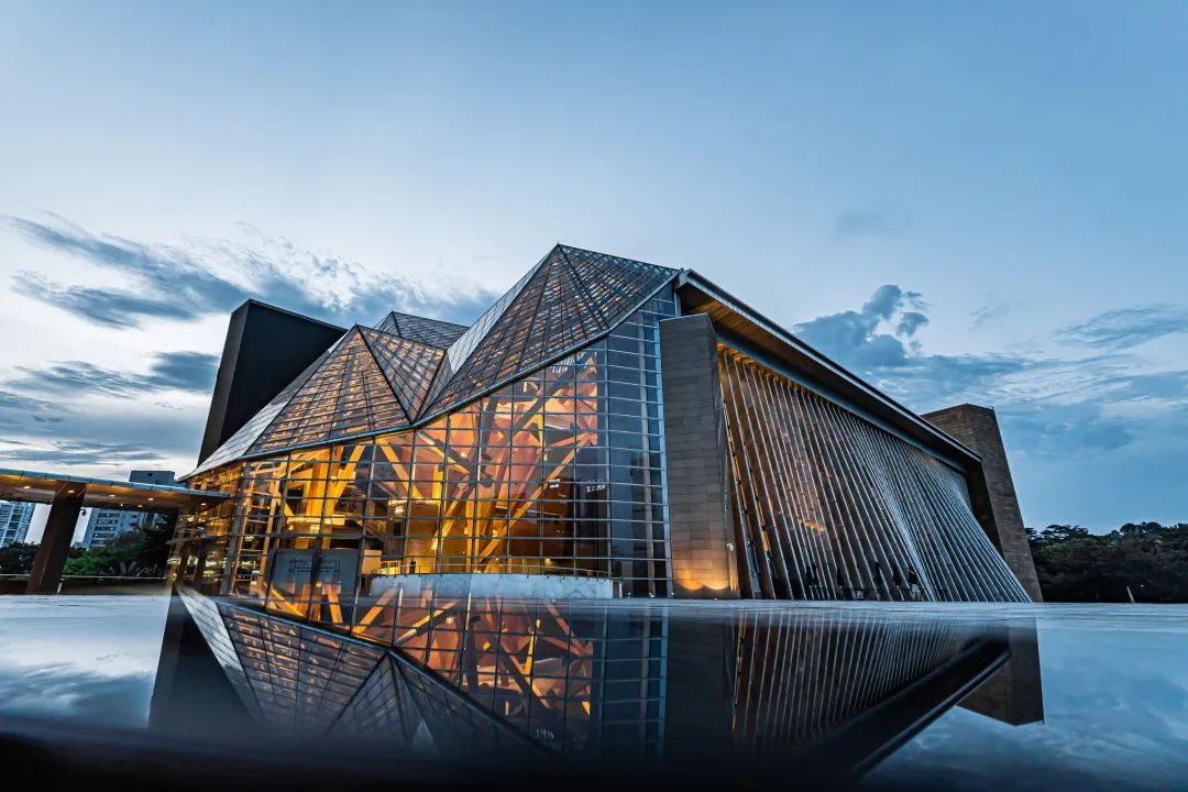 夜幕降临之后,音乐厅会亮起暖黄色的灯光,颇有“火树银花不夜天”之意境。