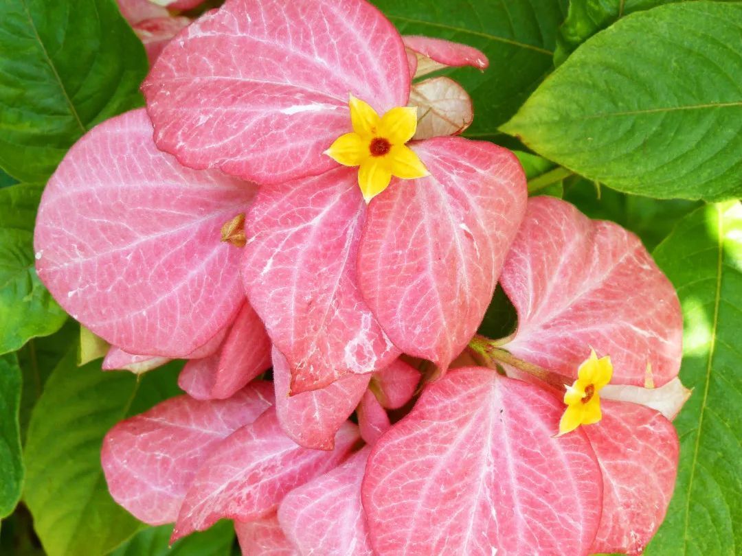 花萼的5枚裂片均扩大呈粉红色花瓣状