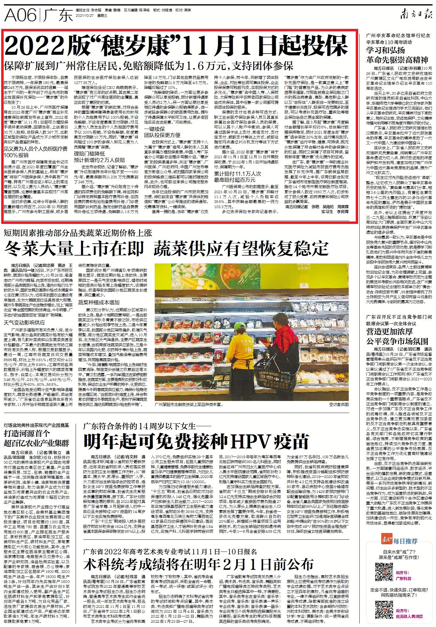 据介绍,2022年度“穗岁康”将于2021年11月1日至12月31日开展投保收费,于2022年1月1日开始待遇核付,保障期为一年。