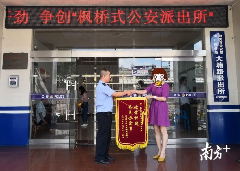 7月29日,韶关市公安局浈江分局大塘路派出所同时收到2面锦旗,分别写着“神警雄风 罪犯克星”和“破案神速 为民办实事”,这是两位受害女事主为感谢该派出所办案民警快速侦破一宗电信网络诈骗案追回被诈骗资金,将诈骗犯罪嫌疑人绳之以法,挽回经济损失后对派出所表示谢意各自赠送的锦旗。