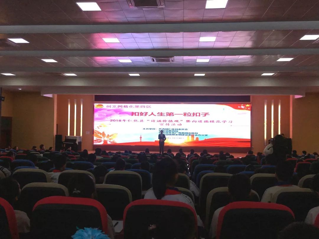 近日,由仁化团县委、教育局、文广新局、仁化县创文网格化第四区联合主办的“扣好人生的第一粒扣子——‘诗诵价值观’暨向道德模范学习宣传活动”在县田家炳小学学术报告厅举行,县城共300多名中小学生参加了此次活动。