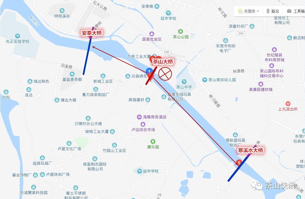 经安泰大桥、寒溪水大桥等路线绕道出行